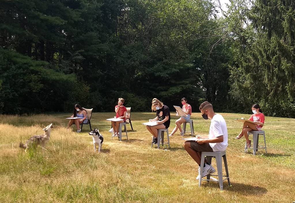The tent is back again this year for 2021 outdoor studio art classes! Students learn techniques for painting, drawing and illustration in their choice of oils, acrylics, watercolors, pastels, quill pen & inks, charcoal, graphites and multi-media. All classes offer group and individualized instruction. Students work on projects that interest them!