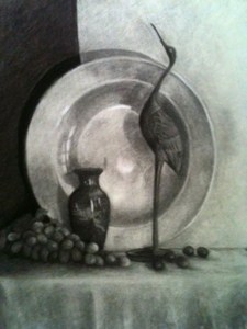 Adult student, Jen-rung captures the brass and wood of her first trump l’oeil study.