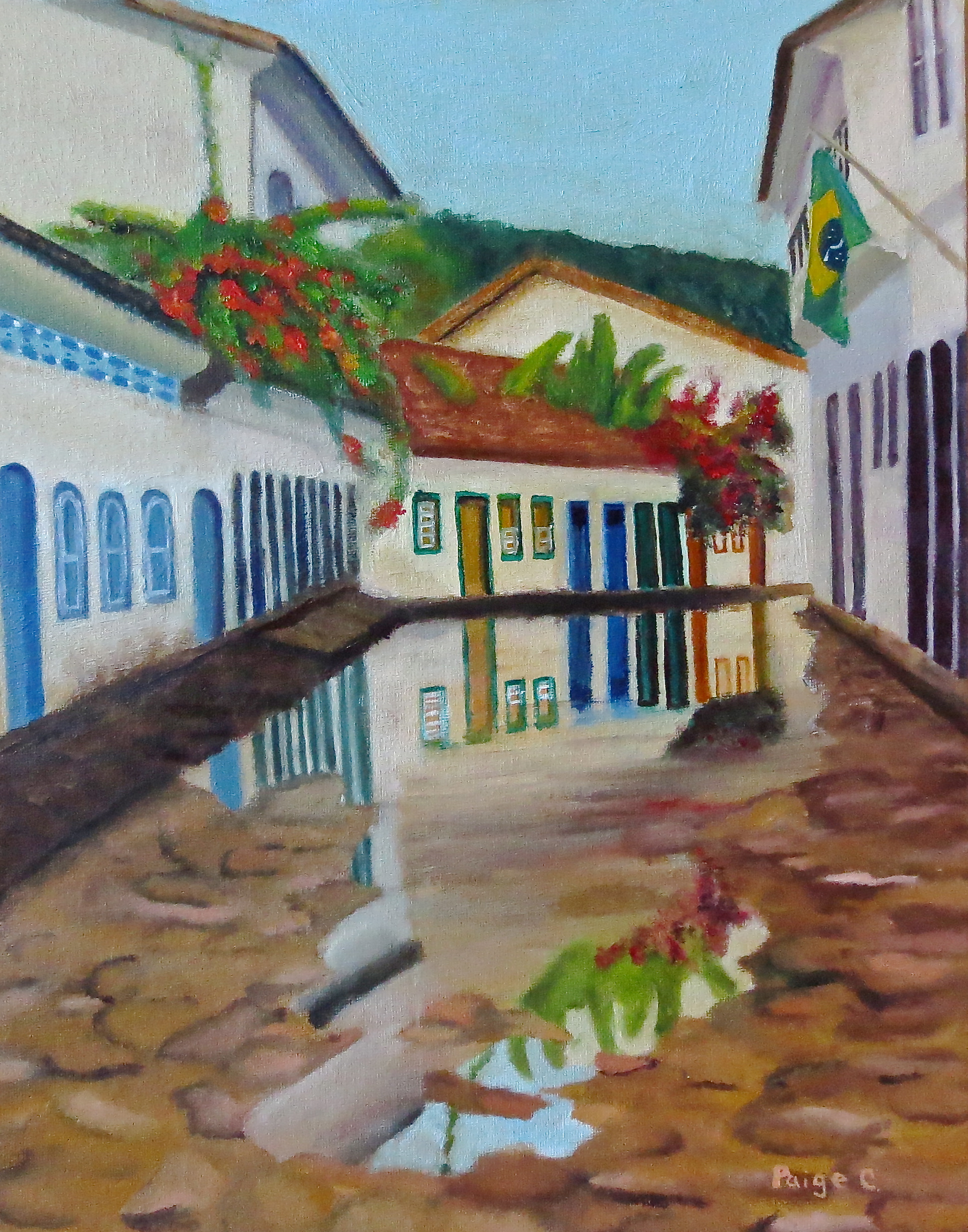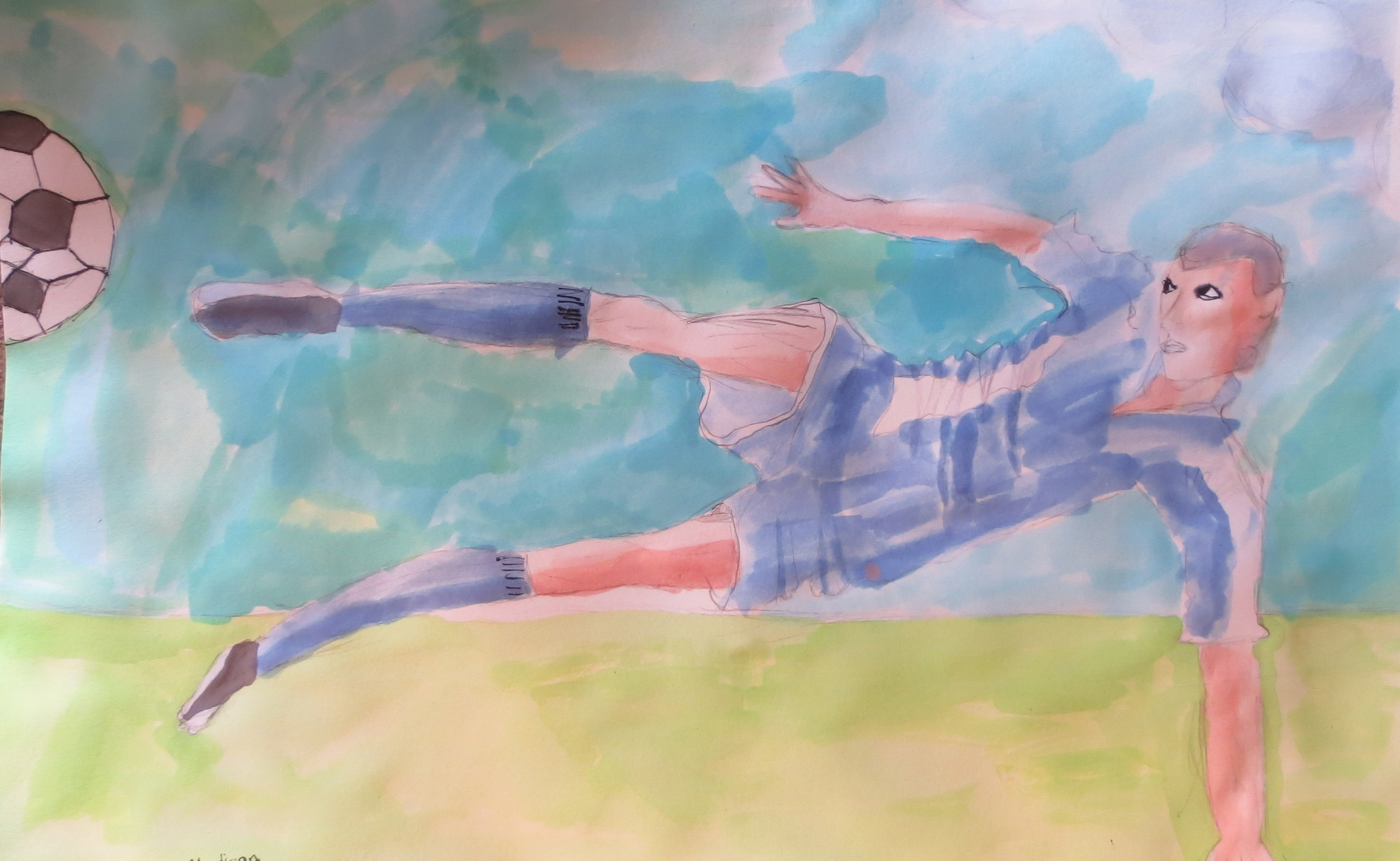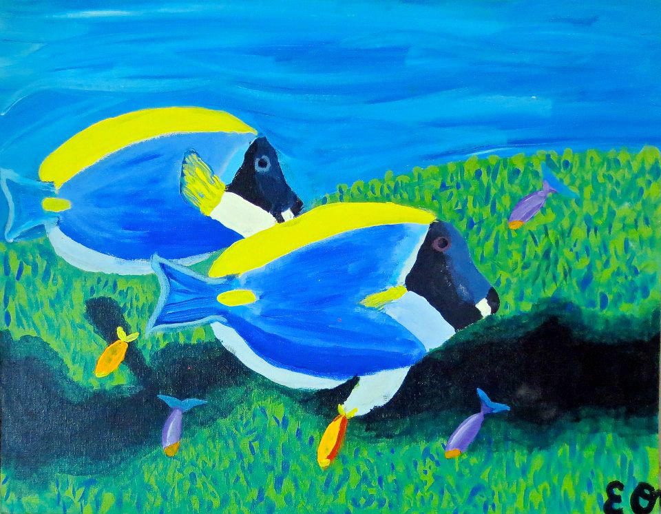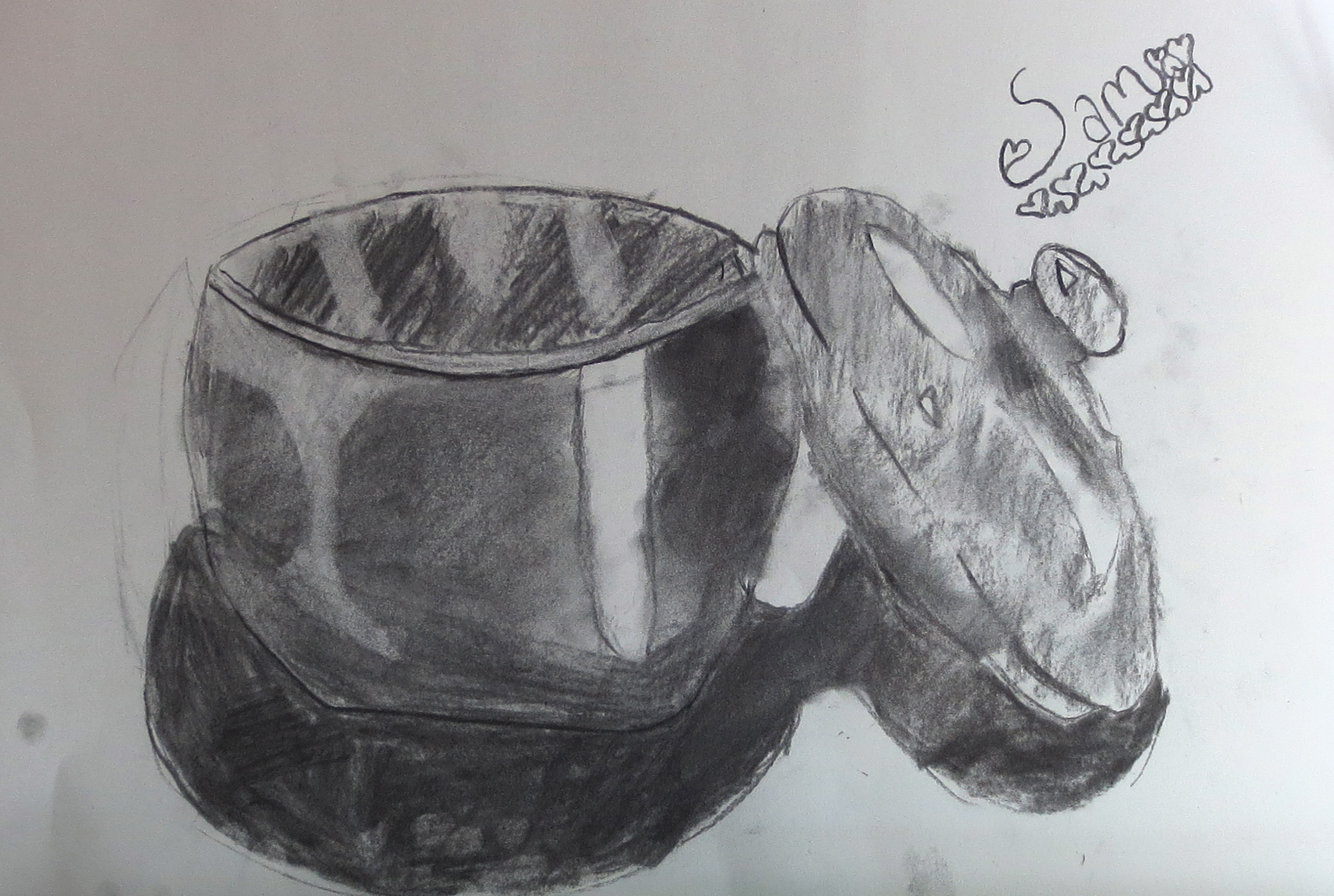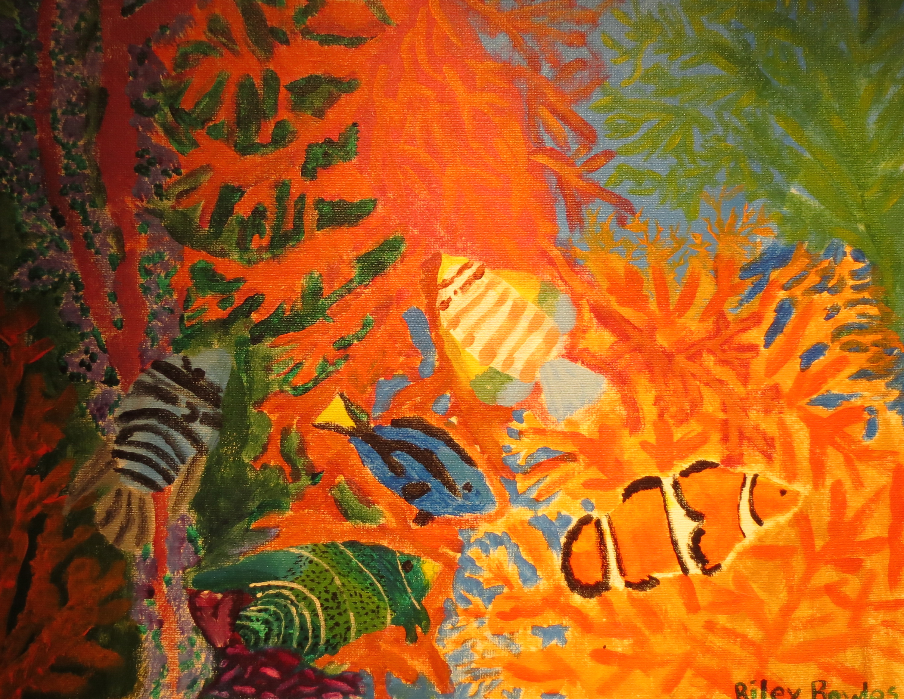 “Game Day” oil, Lauren Hurley, 8th grade: 2015 Honorable Mention Winner Scholastic Art and Writing Awards. Student designed and painted from still life.