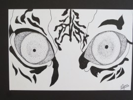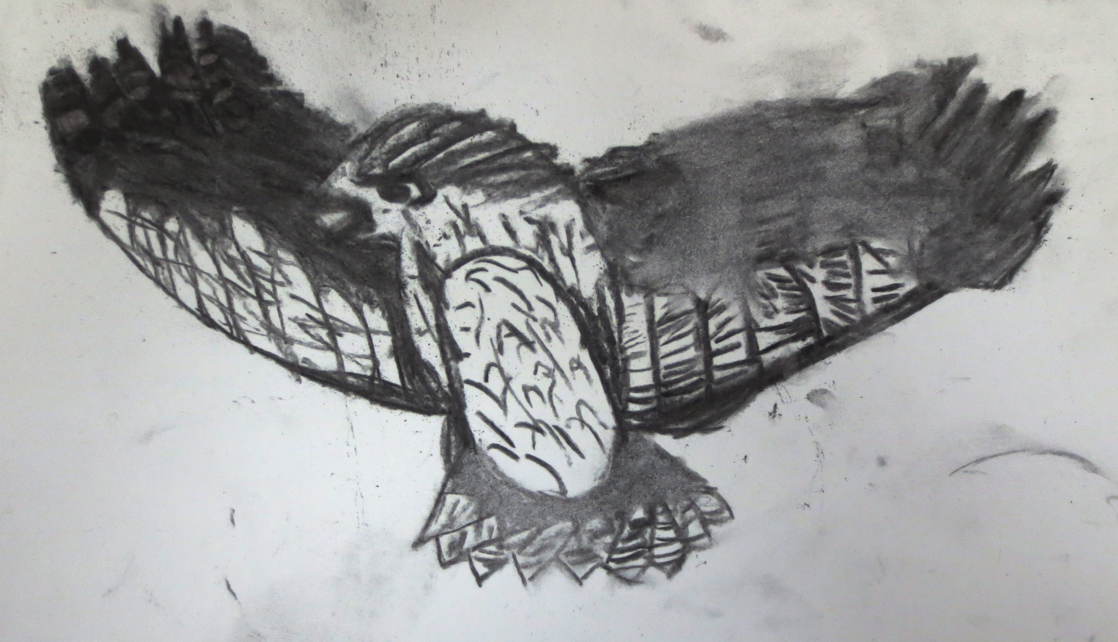 “The Raven” pen and ink, Amy Schubert, 10th grade: 2017 Gold Key Winner, Scholastic Art and Writing Awards. Amy illustrated this raven inspired by research of photography images embellished by her imagination and a passion for mythical creatures.