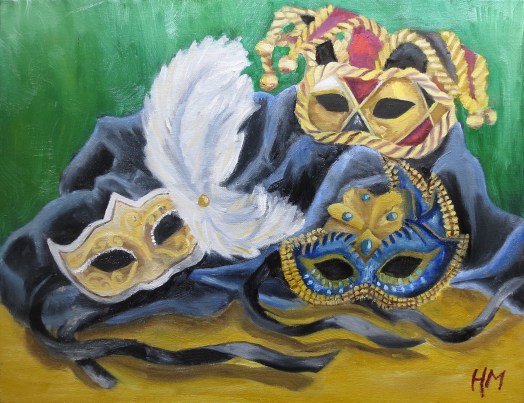 “Venetian Masks” oil, Haley Morrison, 8th grade: 2016 Silver Key Winner Scholastic Art and Writing Awards. Student designed and painted from still life.